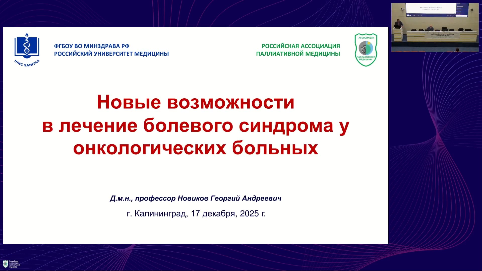 Новые возможности в лечение болевого синдрома у онкологических больных - Новиков Георгий Андреевич, д.м.н., профессор, заведующий кафедрой паллиативной медицины ФГБОУ ВО Минздрава России «Российский университет медицины», председатель Правления Российской Ассоциации паллиативной медицины, г. Москва