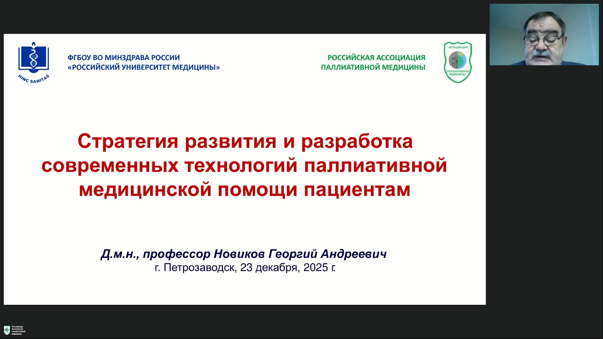 Стратегия развития и разработка современных технологий паллиативной медицинской помощи пациентам - Новиков Георгий Андреевич, д.м.н., профессор, заведующий кафедрой паллиативной медицины ФГБОУ ВО Минздрава России «Российский университет медицины», председатель Правления Российской Ассоциации паллиативной медицины г. Москва
