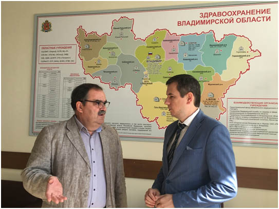 12 сентября 2019 г. в департаменте здравоохранения администрации Владимирской области состоялась рабочая встреча директора департамента Мозалёва А.С. и советника генерального директора НМИЦ радиологии МЗ РФ Новикова Г.А.