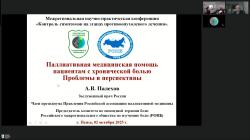 Паллиативная медицинская помощь пациентам с хронической болью. Проблемы и перспективы - Палехов Александр Владимирович, член президиума правления Российской Ассоциации паллиативной медицины, председатель комитета по опиоидной терапии боли в клинической практике Российского межрегионального общества по изучению боли (РОИБ), заслуженный врач России. г. Ставрополь. (онлайн)