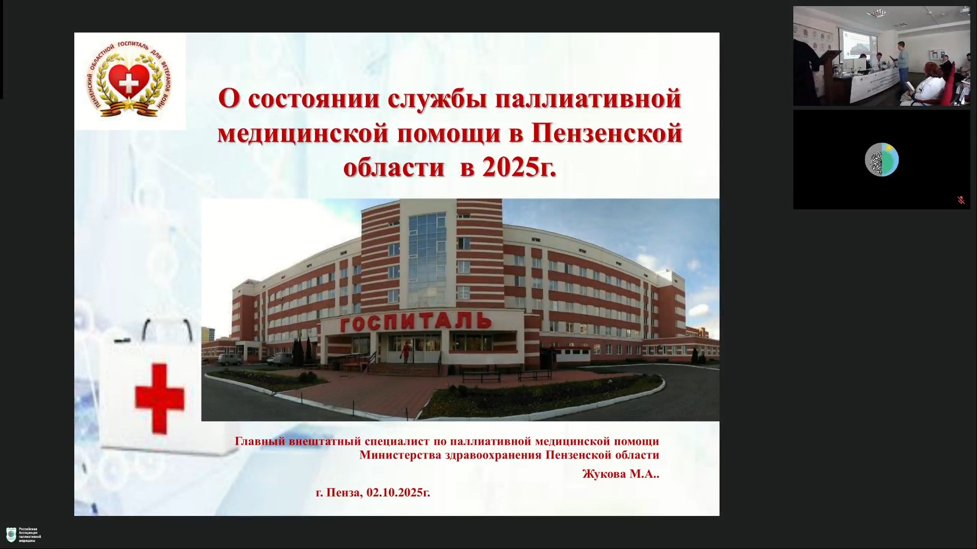 О состоянии службы паллиативной медицинской помощи в Пензенской области в 2025 году - Жукова Марина Алексеевна, главный внештатный специалист по паллиативной медицинской помощи Министерства здравоохранения Пензенской области, заведующая 1-м отделением паллиативной медицинской помощи ГБУЗ "Госпиталь для ветеранов войн", г. Пенза.